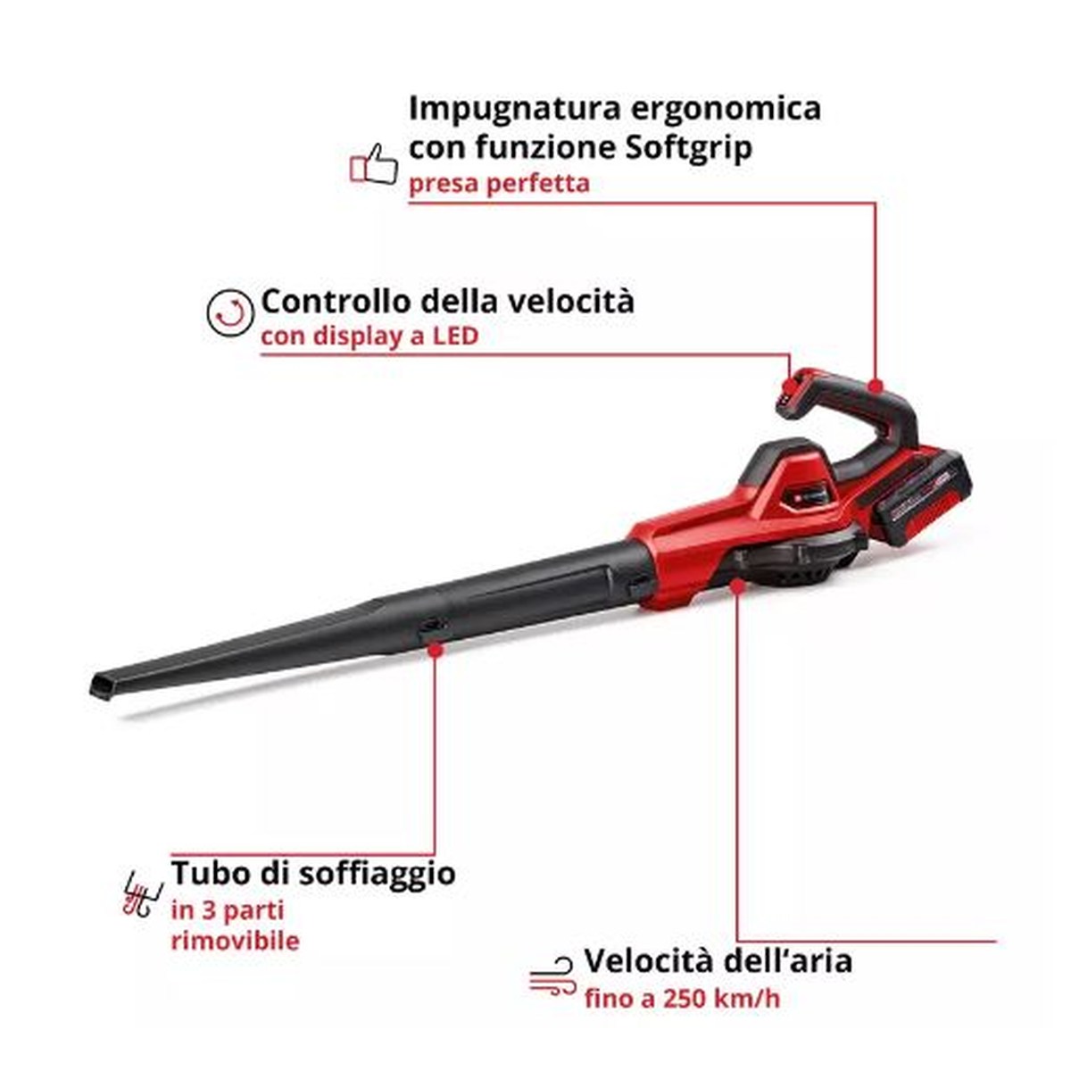 EINHELL 3433560 - Soffiatore a batteria GE-UB 18/250 Li E (1 è una macchina per il giardinaggio che unisce potenza e maneggevolezza, progettata per affrontare ogni tipo di vegetazione con efficienza. Nella categoria Aspiratori/soffiatori a batteria, questo modello garantisce prestazioni costanti anche su terreni irregolari e superfici estese. Il motore è dimensionato per offrire coppia elevata e consumi contenuti, mentre il design ergonomico riduce vibrazioni e affaticamento. EINHELL è un marchio leader nelle macchine per il giardinaggio, apprezzato per la potenza dei motori e la semplicità di manutenzione. La scelta ideale per chi cerca risultati professionali nella cura del verde. Su D'Audino Ferramenta con i migliori marchi e spedizione in 24/48h.