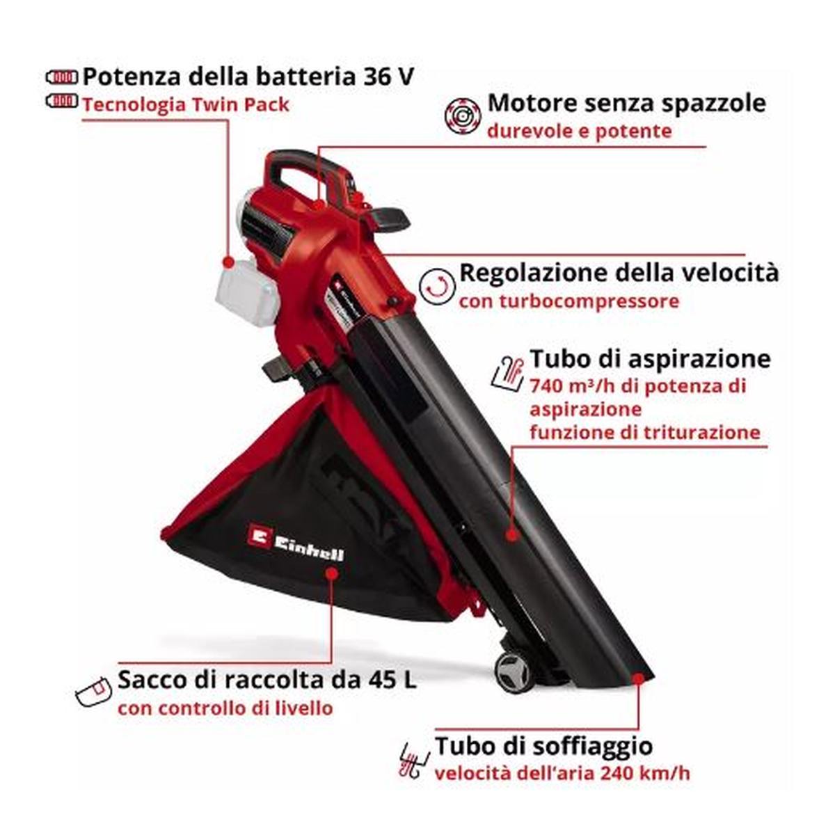 EINHELL 3433640 - Soffiatore aspiratore a batteria Venturro è una macchina per il giardinaggio che unisce potenza e maneggevolezza, progettata per affrontare ogni tipo di vegetazione con efficienza. Nella categoria Aspiratori/soffiatori a batteria, questo modello garantisce prestazioni costanti anche su terreni irregolari e superfici estese. Il motore è dimensionato per offrire coppia elevata e consumi contenuti, mentre il design ergonomico riduce vibrazioni e affaticamento. EINHELL è un marchio leader nelle macchine per il giardinaggio, apprezzato per la potenza dei motori e la semplicità di manutenzione. La scelta ideale per chi cerca risultati professionali nella cura del verde. Su D'Audino Ferramenta con i migliori marchi e spedizione in 24/48h.